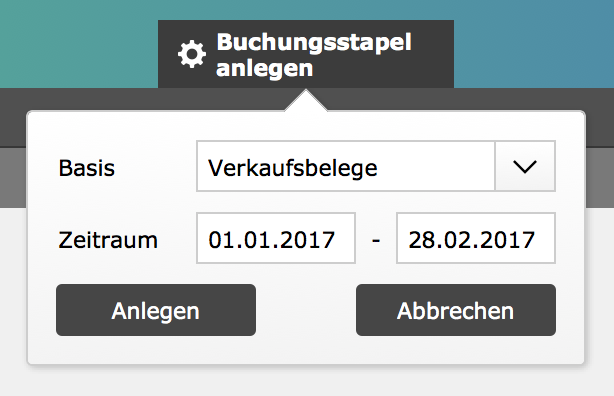 Hierzu selektiert man zunächst die zu übergebenden Belege und generiert hieraus einen Buchungsstapel: