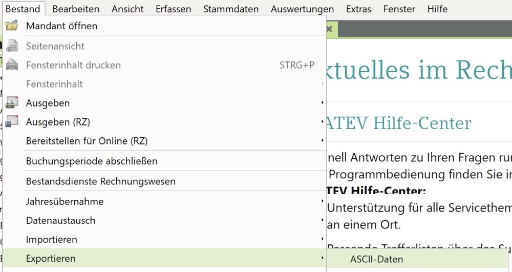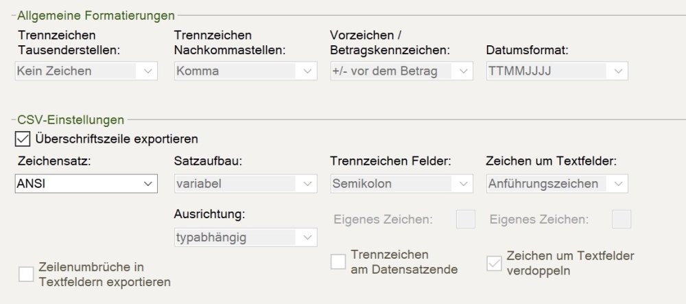 DATEV – Export muss in aus DATEV-Rechnungswesen in einem bestimmten Format erfolgen: